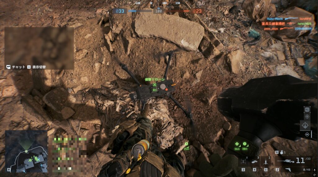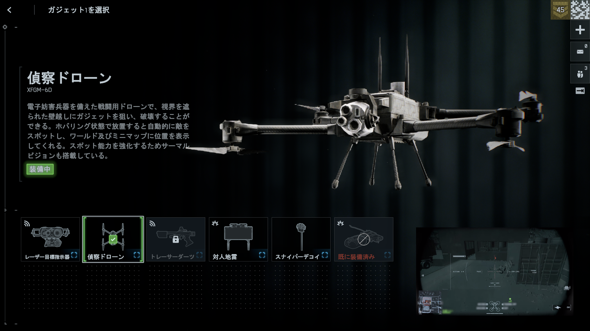 ちなみに本来ドローンは偵察用に用いられており、敵をスポットしたり敵のガジェットを破壊するのが本来の使用用途です