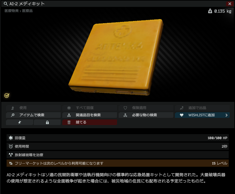 ■ AI-2 medikit: 体力を最大で100回復することが出来る